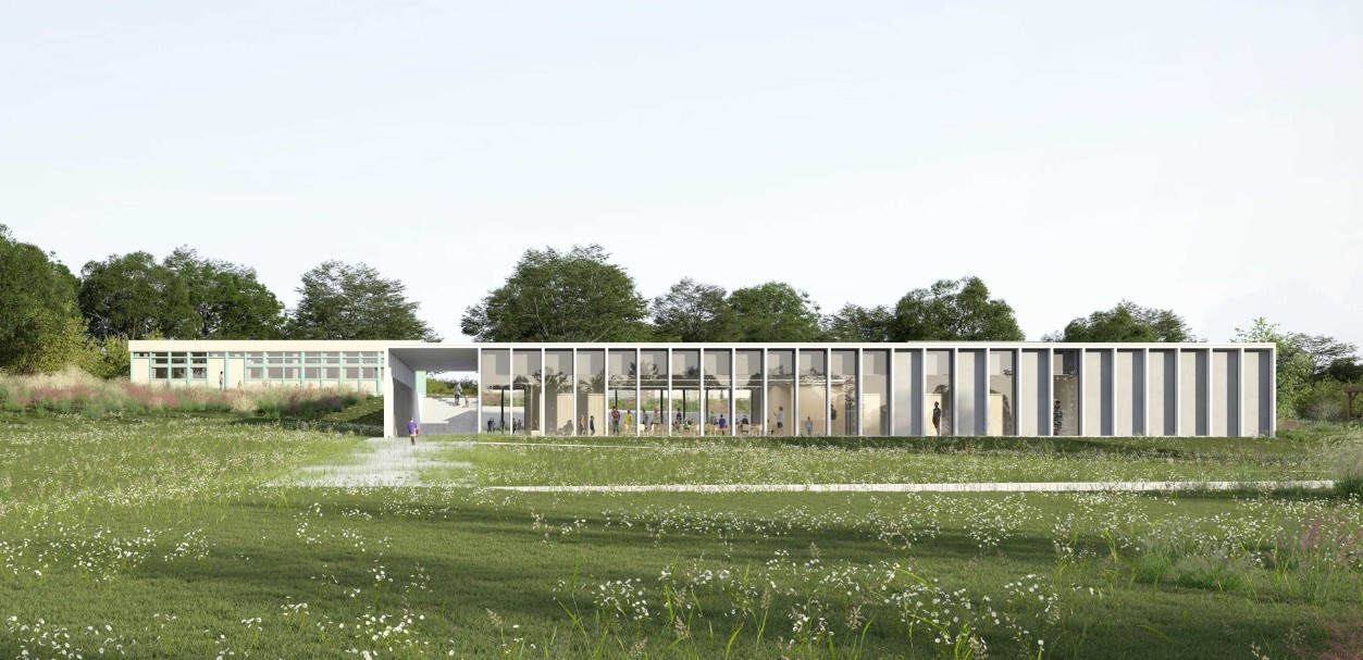 Construction d’un restaurant scolaire municipal d’une capacité de 168 places comprenant une salle à manger maternelle et élémentaire, un service self, une zone office pour la production des repas et le stockage des denrées, des vestiaires/sanitaires personnelles et une zone sanitaires maternelles/élémentaires