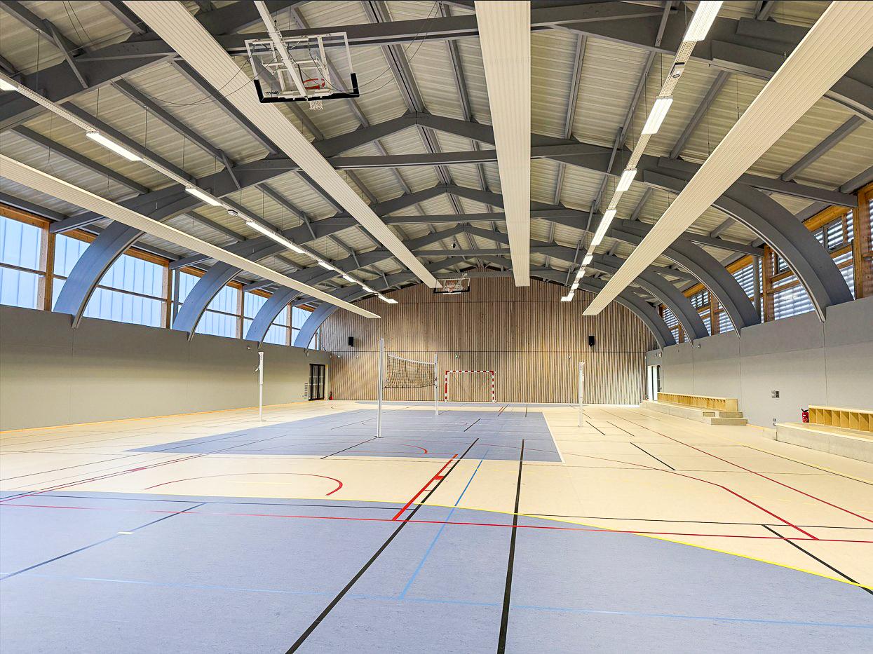 Phase 2 (achevée en janvier 2026) : rénovation de l’ancien gymnase, avec conservation de la charpente d’origine, et près de 900 m² dédiés à la pratique multi-sports (handball, volleyball, basket, badminton, futsal, escrime…).